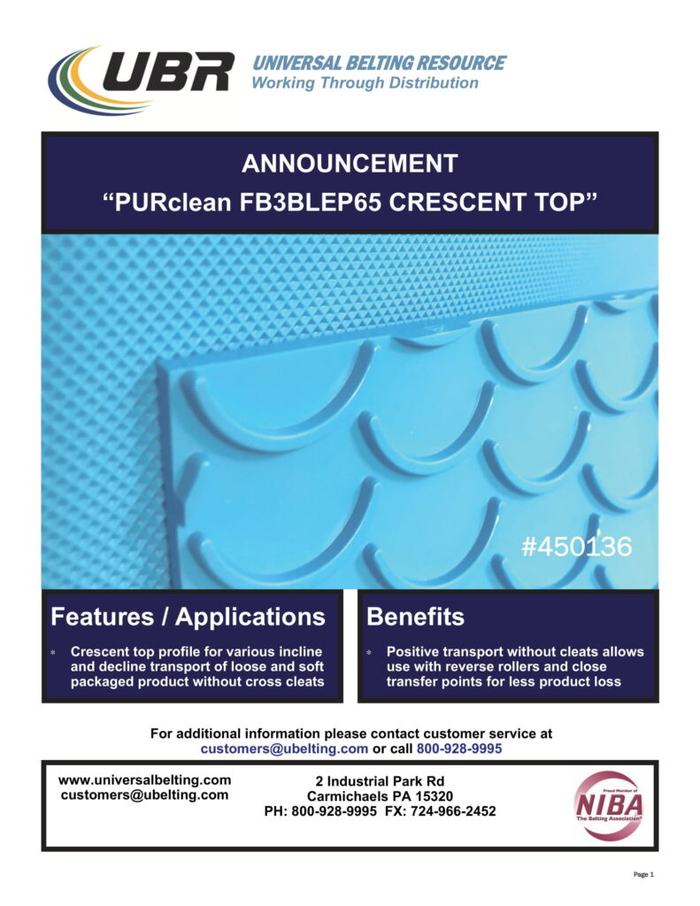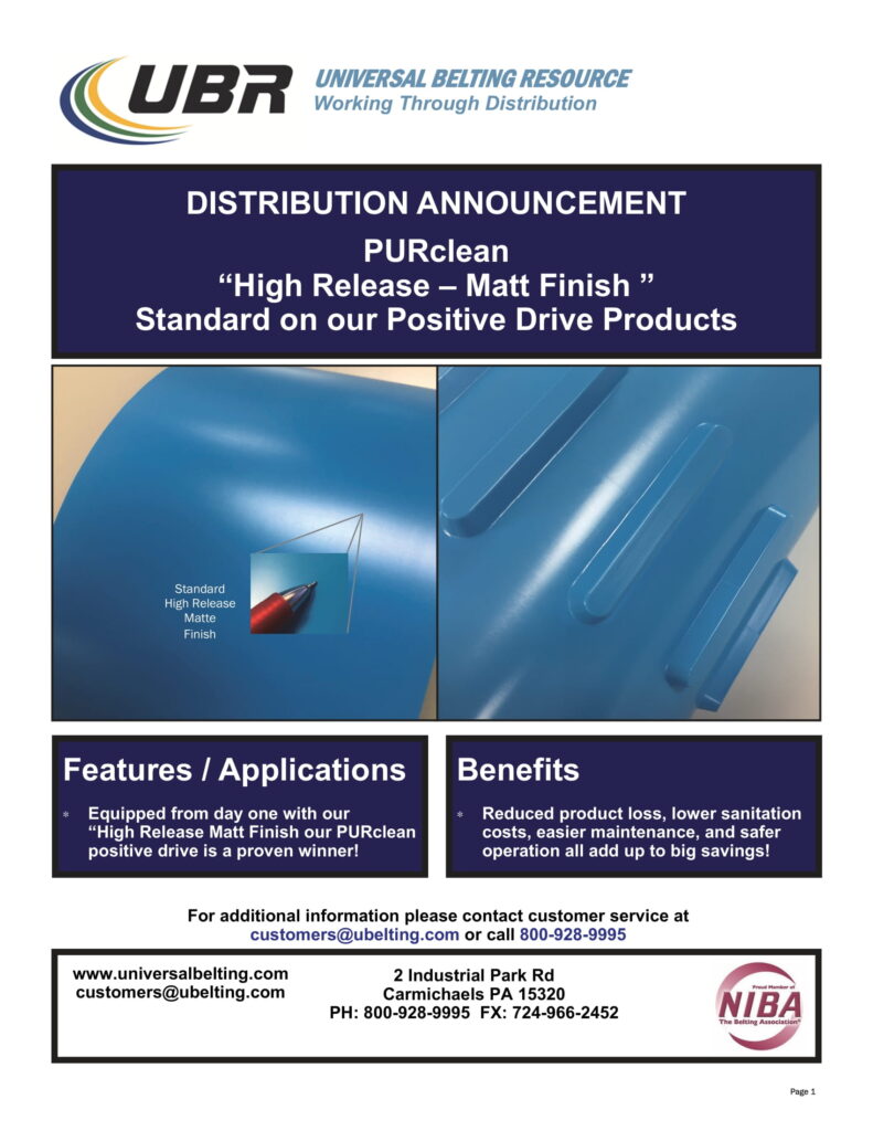 UBR’s PURclean products are great for many food processes because they are USDA Dairy, USDA Meat & Poultry, and FDA approved! The Monolithic Thermoplastic Polyurethane offers easier cleanability and better wear resistance.
